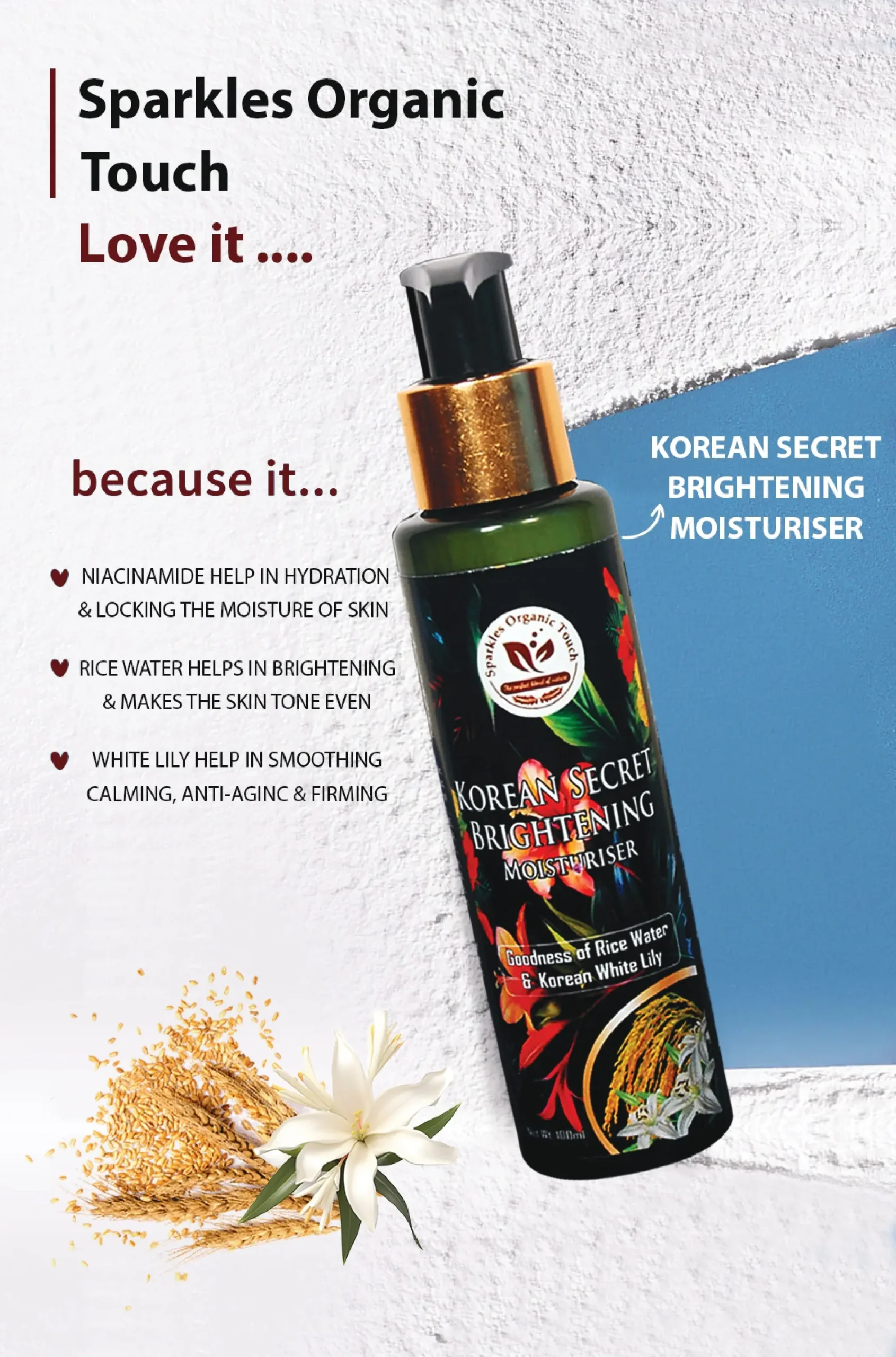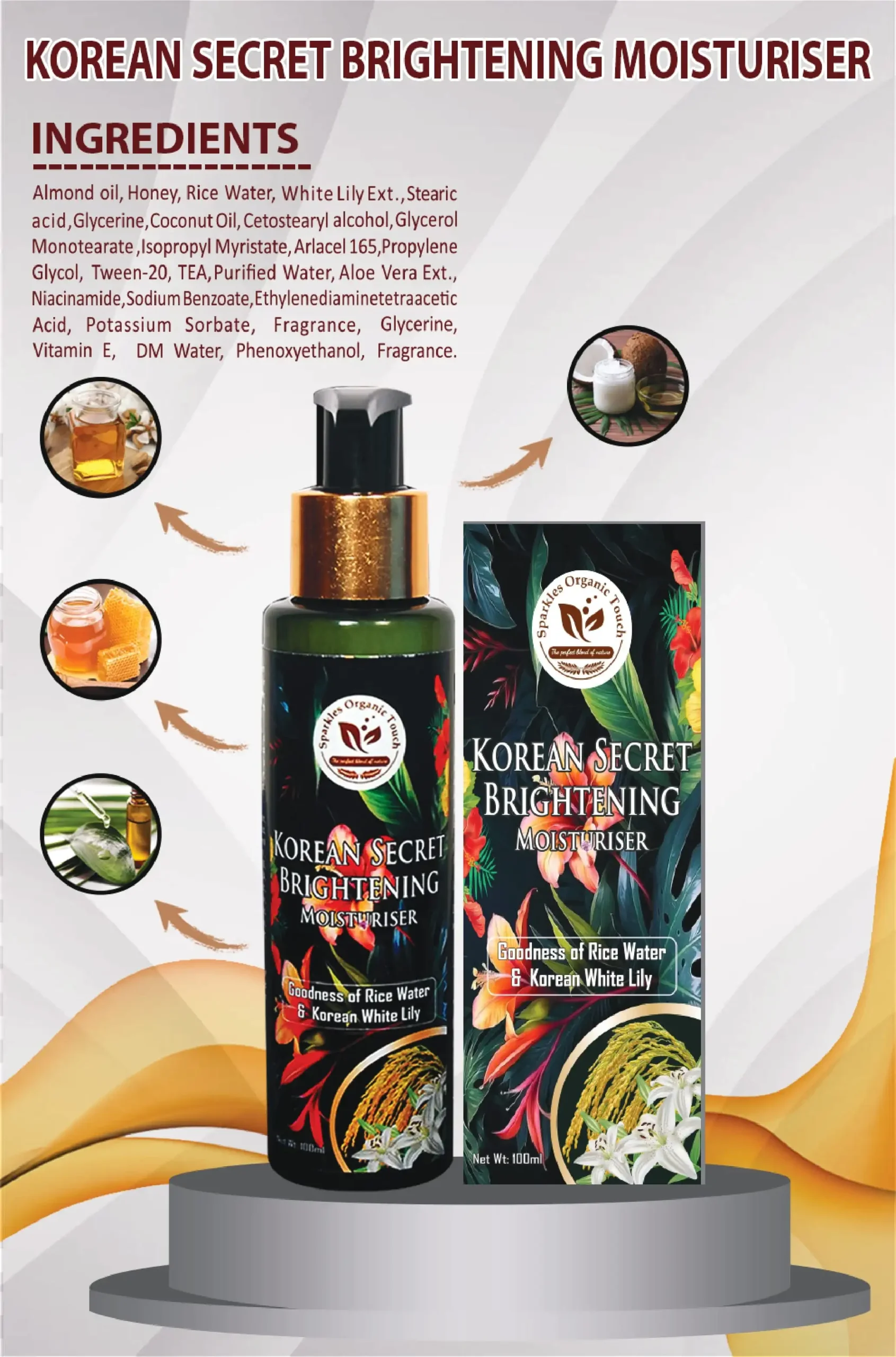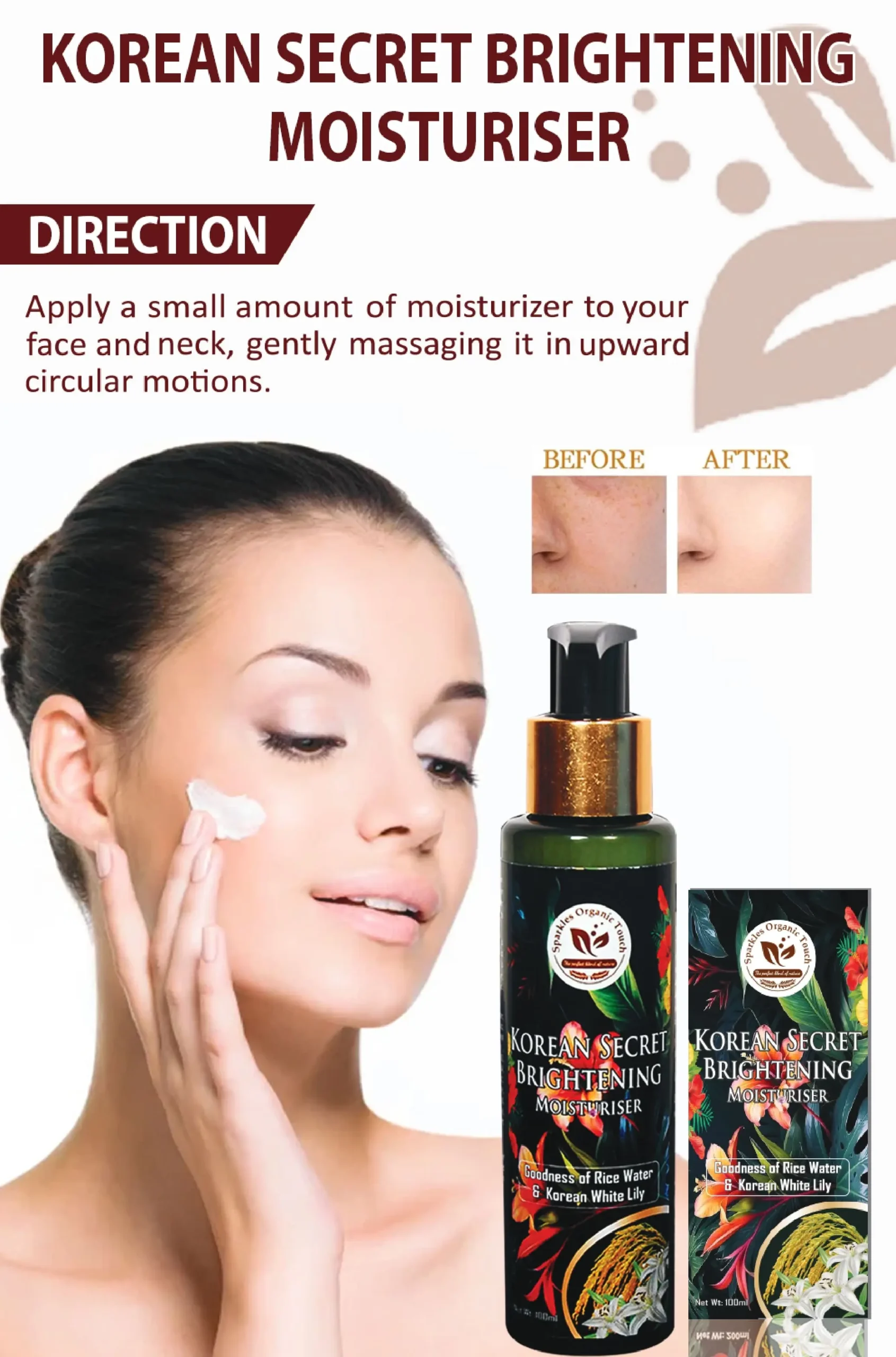 Experience the transformative power of Korean beauty secrets with our premium Brightening Moisturizer. Infused with the goodness of rice water, white lily extract, and niacinamide, this luxurious formula is your key to achieving a radiant, youthful glow.